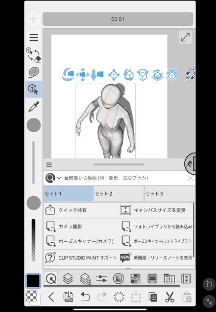 アプリ版のクリスタの操作画面はこのような感じになっている